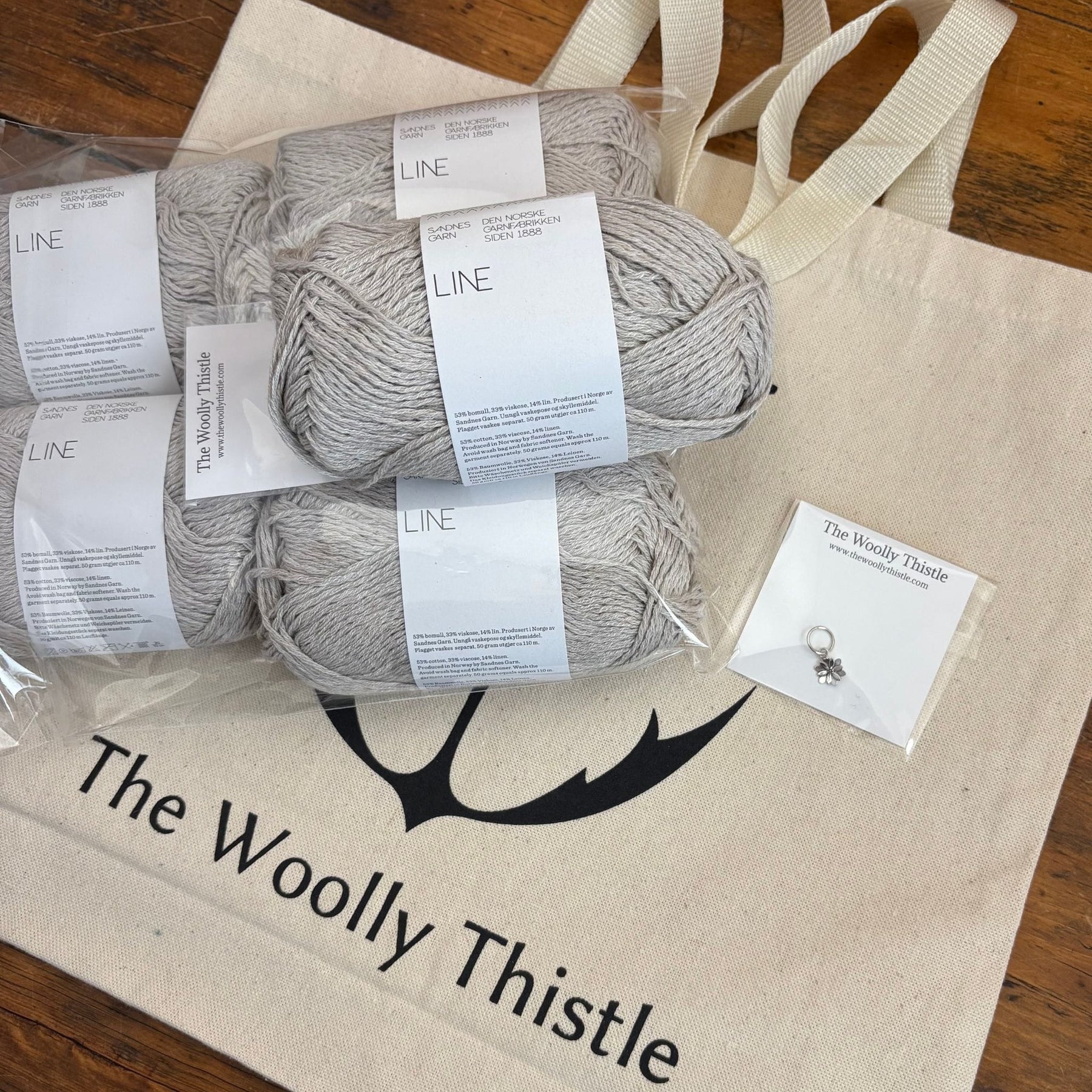 Sandnes Garn Line is a worsted weight, breathable blend of cotton, viscose, and linen that creates a soft fabric with beautiful drape. Cotton and linen give the fabric crisp definition and stability, while viscose contributes softness and graceful drape. The result is a lightweight top that stays cool and comfortable on warm days and is perfect for layering. This yarn set has all the yarn you need for this beautiful top and it's tucked inside a TWT tote with a stitch marker so you can get right on with your knitting.